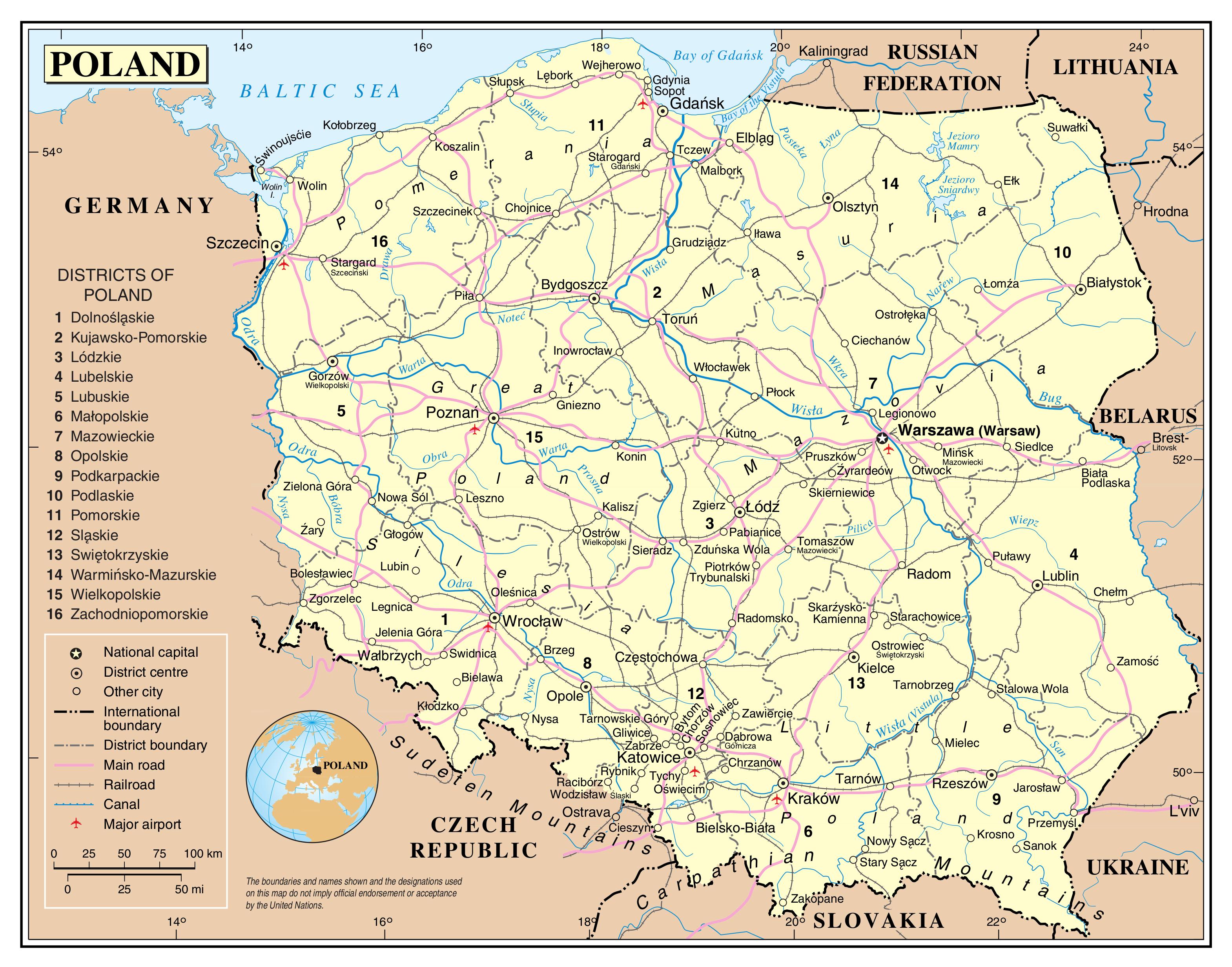 Karte von Polen-Transporte. Polen-Transporte-Karte (Osteuropa - Europa) zu drucken. Polen-Transporte-Karte (Osteuropa - Europa) zum download bereit. Der Transport in Polen umfasst Luftverkehr, Wasserwege, Straßen und Eisenbahnen. Als ein Land, das an der "Kreuzung" Europas liegt, ist Polen mit seiner entwickelten Wirtschaft eine Nation mit einem großen und zunehmend modernen Netzwerk an Verkehrsinfrastruktur. Die meisten polnischen Städte haben ein gut ausgebautes Netz an öffentlichen Verkehrsmitteln. Je nach Stadt umfassen sie Busse, Straßenbahnen, Oberleitungsbusse, Züge und U-Bahnen, wie es in der Karte der polnischen Verkehrsmittel dargestellt ist. Es ist in der Regel eine gute Idee, ein Langzeitticket zu kaufen, da es schwer ist, den öffentlichen Verkehr zu vermeiden. Der Stadtverkehr stellt den größten Teil des Personenverkehrs in Polen dar, was die Fahrgastzahlen angeht. Er existiert in etwa 260 Städten und Gemeinden, die von 17 Millionen Menschen bewohnt werden. Städtische Verkehrsbetriebe befördern jährlich etwa 3,7 Milliarden Fahrgäste, was etwa 80 % der gesamten Fahrgastzahlen im öffentlichen Verkehr ausmacht.